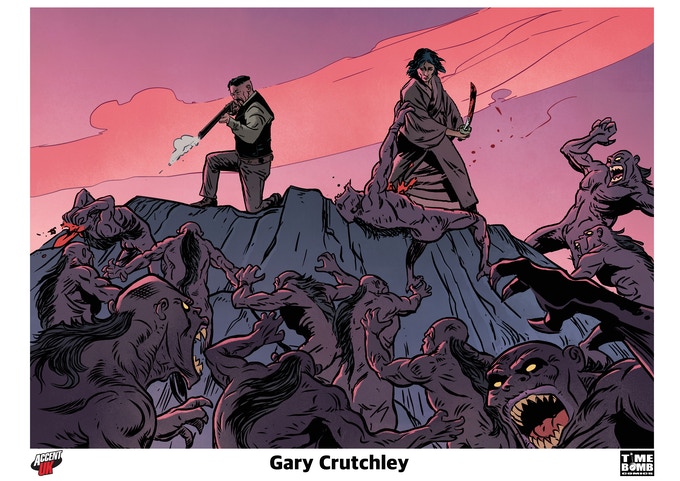 We’ve teamed up with Dave West of AccentUK- if you’re supporting Brawler #2 and WESTERNoir on Kickstarter you’ll get the full bonus print below! Both comics feature the work of creator Gary Crutchley, so we’ve gotten Gary together with colourist Matt Soffe to produce a team up including both lead characters!